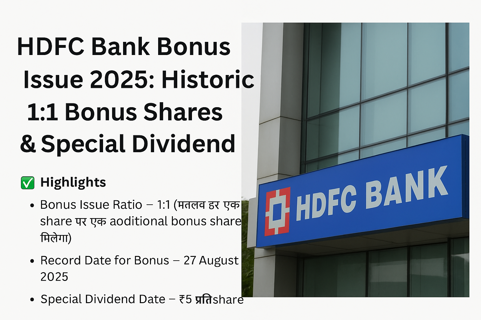 Read More🏦 HDFC Bank Bonus Issue 2025: Historic 1:1 Bonus Shares & Special Dividend HDFC Bank ने अपने investors को बड़ी