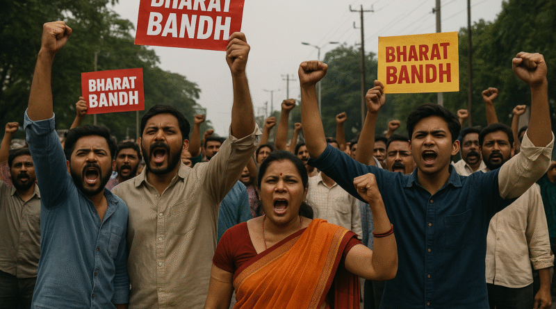 ЁЯЪи рдХреНрдпрд╛ рд╣реИ Bharat Bandh рдХрд╛ рдХрд╛рд░рдг? рдЖрдЬ, 9 рдЬреБрд▓рд╛рдИ 2025, рднрд╛рд░рдд рдореЗрдВ рдПрдХ рдРрддрд┐рд╣рд╛рд╕рд┐рдХ рд╣рдбрд╝рддрд╛рд▓ рджреЗрдЦрдиреЗ рдХреЛ рдорд┐рд▓реАред рд▓рдЧрднрдЧ